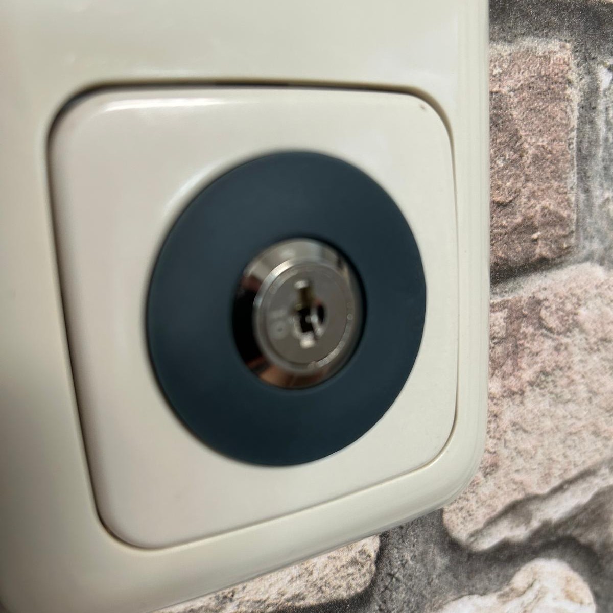 –Gleichschließend, d. h. alle Steckdosen können mit demselben Schlüssel verschlossen werden